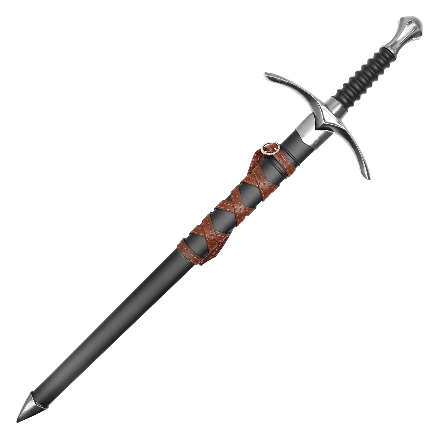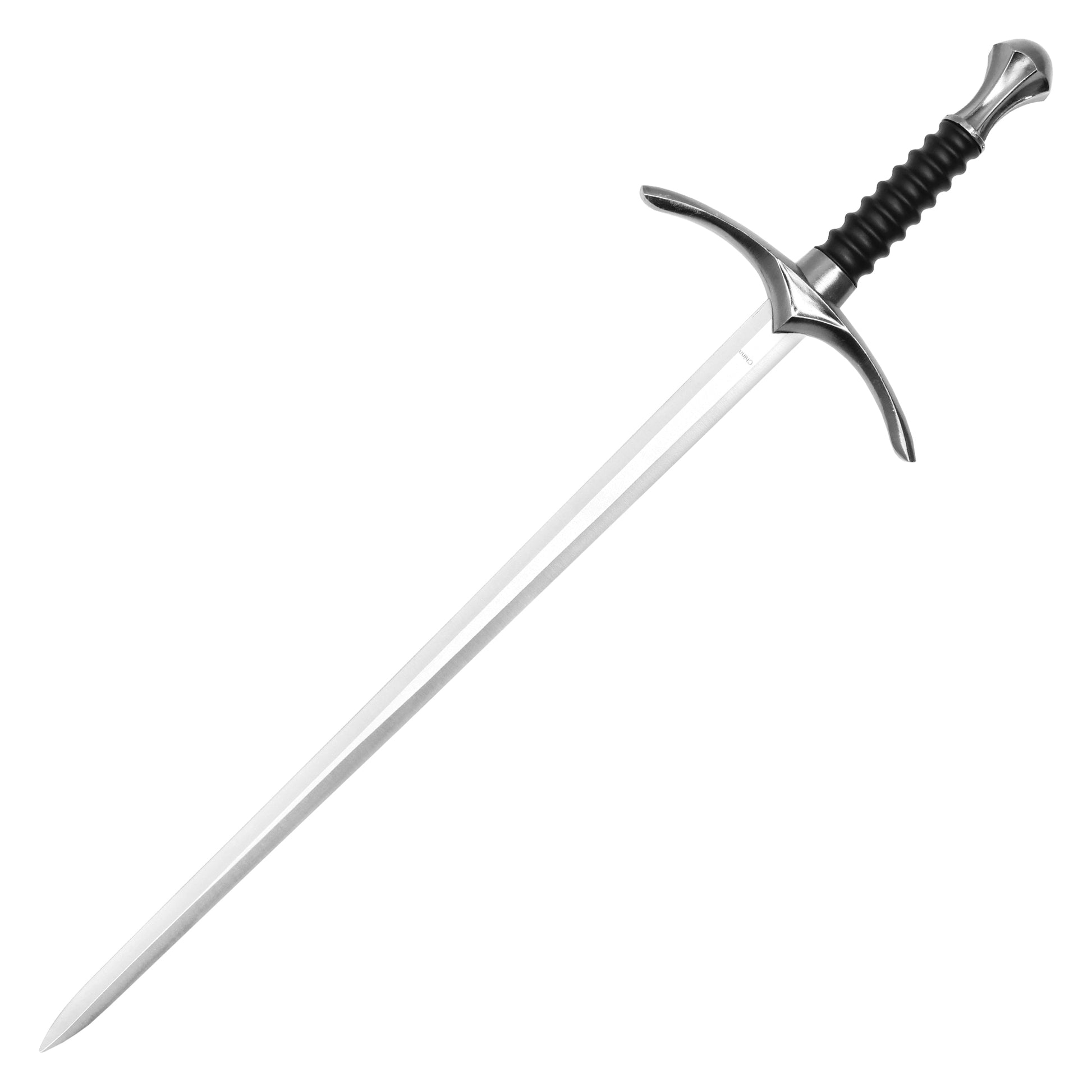 • Handle: Black Ribbed Handle With Curved Guard And Silver Pommel