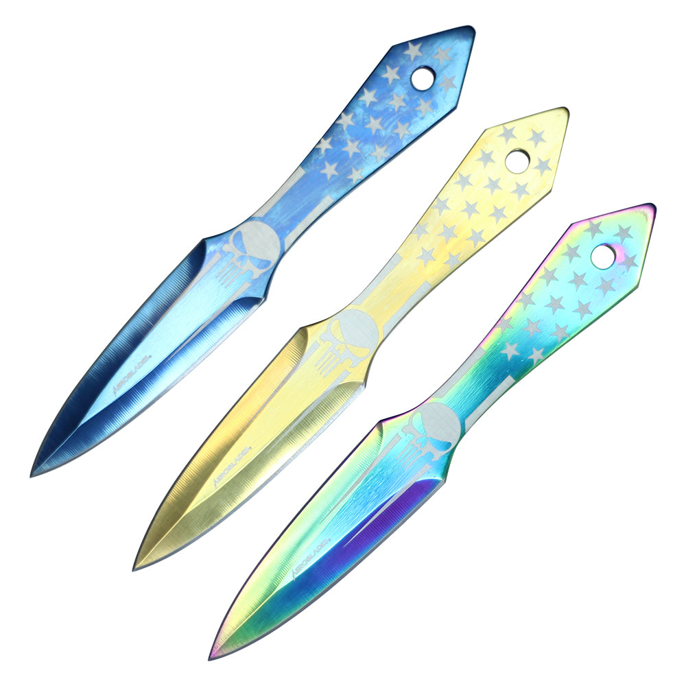 6.5" Multi-Color Skull | 3-Piece Throwing Knife Set With Sheath