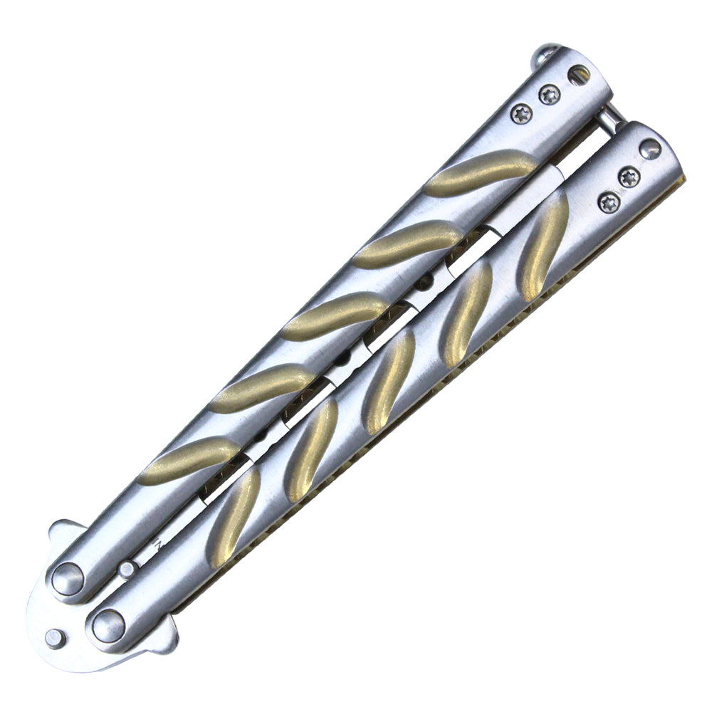 8 3/4" Stainless Steel Balisong Training Knife /w Gold indentation marks on handle