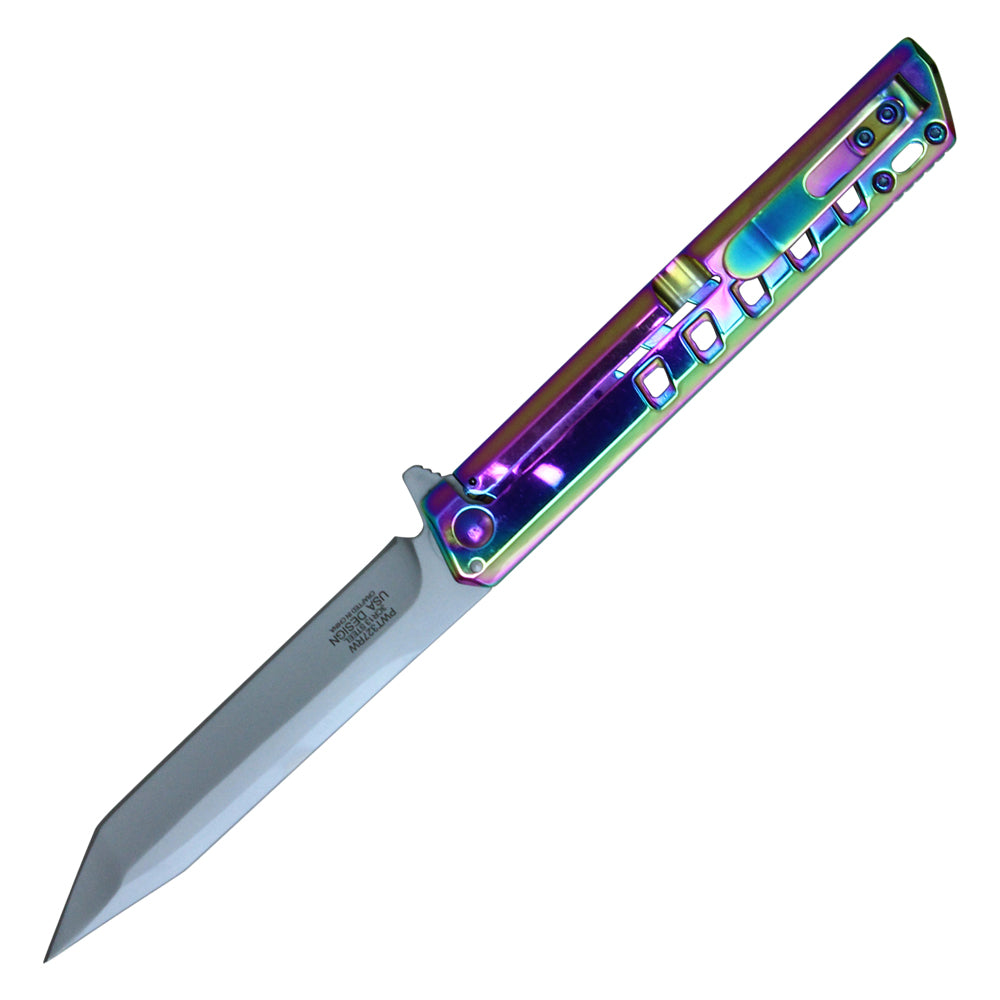 9-1/4" Tanto pocket knife (Rainbow)