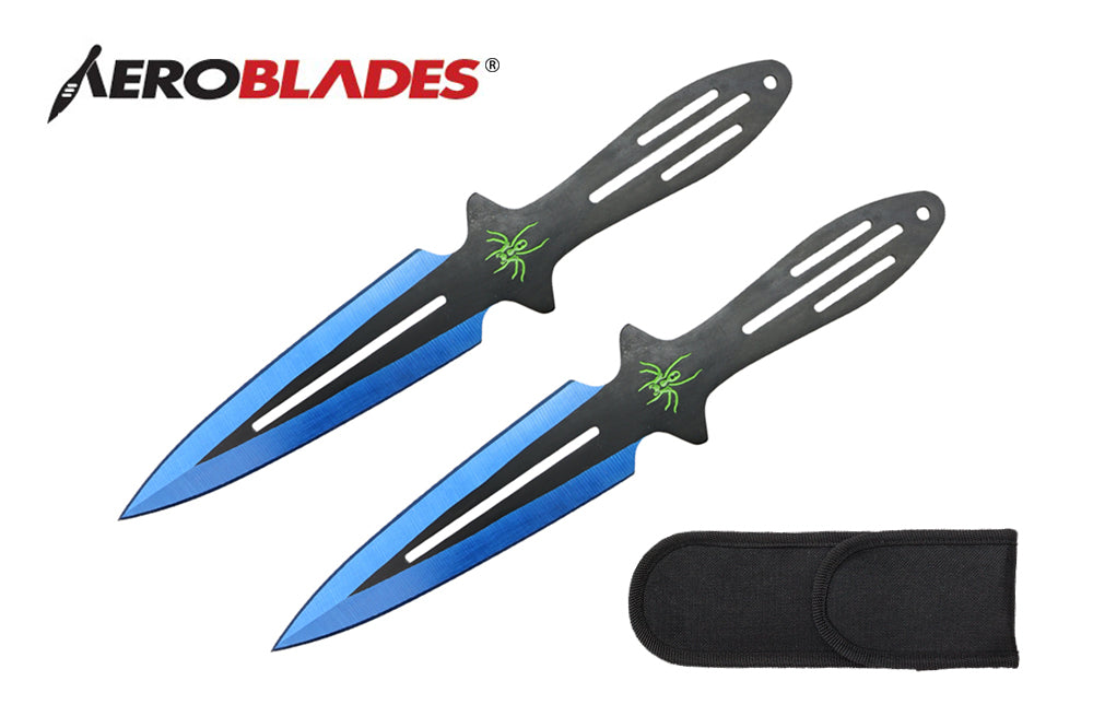 9" 2 PC BLUE & BLACK spider THROWING KNIVES