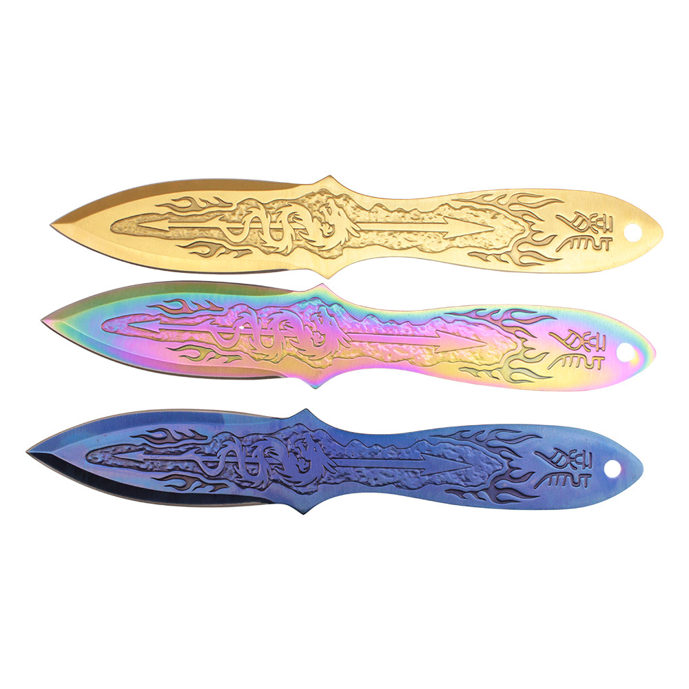 9-Inch 3Pc. Assorted Color Stainless Steel Dragon Throwing Knive Set