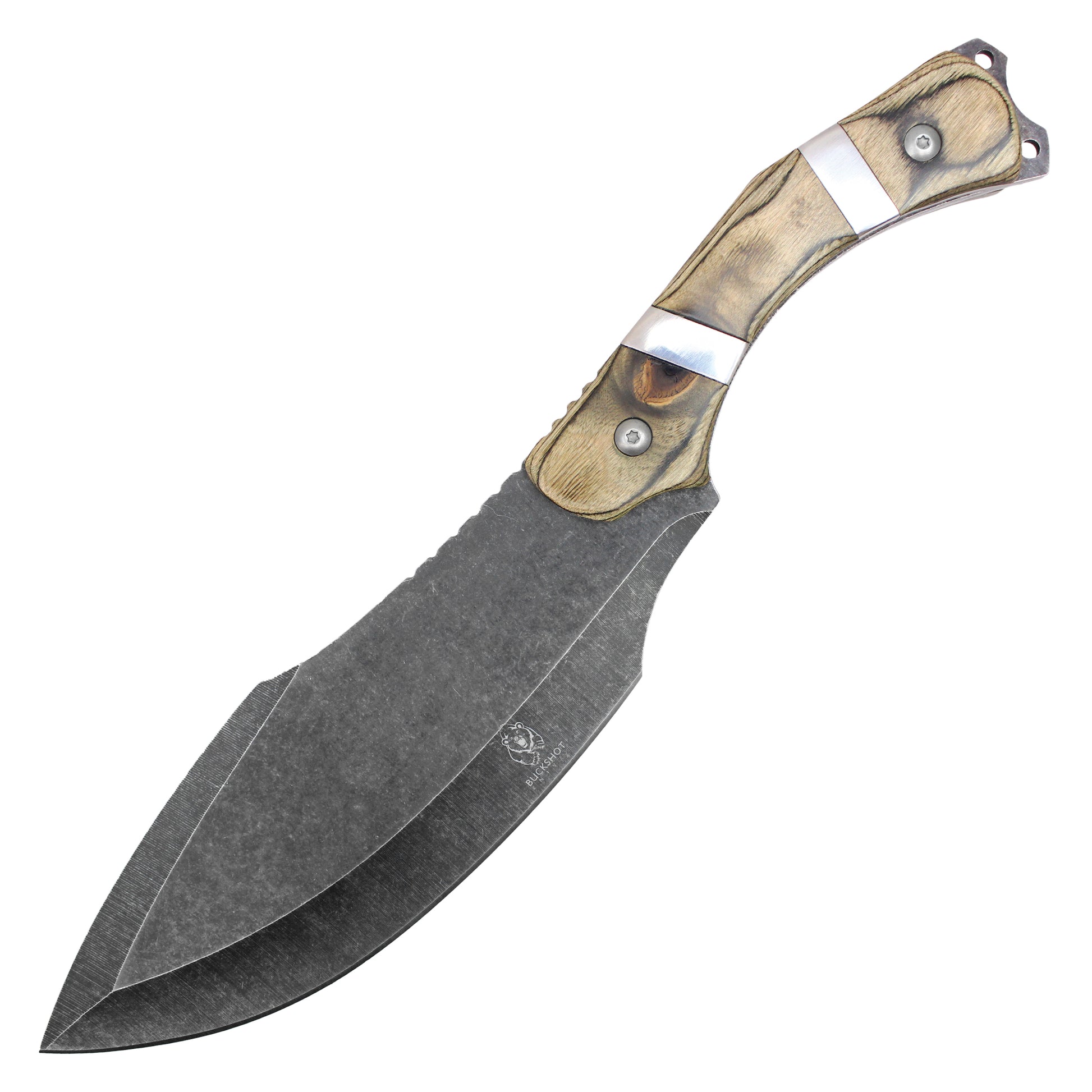 Buckshot Knives - 12" Stonewashed Blade w/ Wood Handle | Fixed Blade Hunting Knife