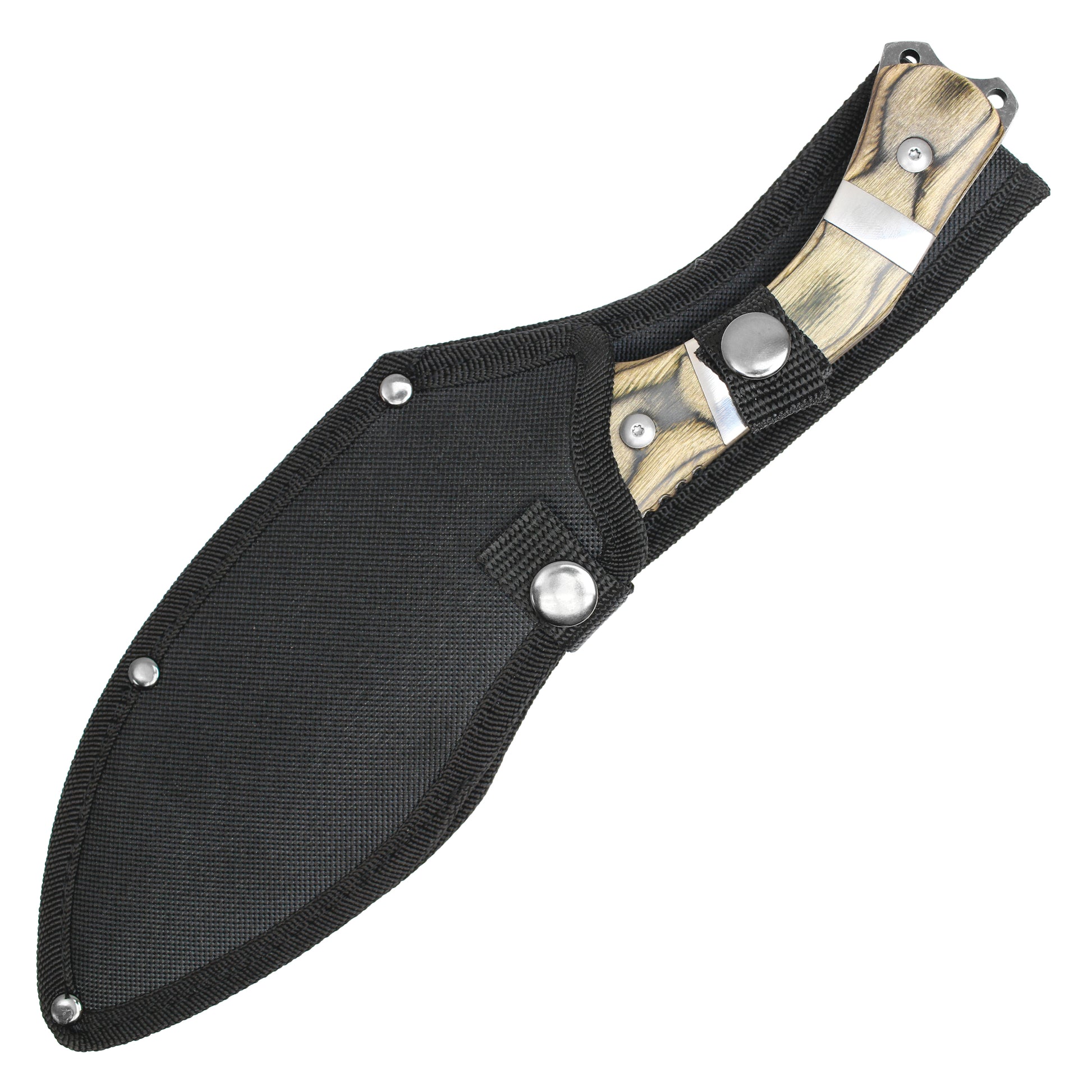 The Buckshot Knives 12" Stonewashed Hunting Knife is built for power, precision, and reliability. Featuring a bold 7.5" stonewashed blade, this fixed blade is perfect for hunters, outdoorsmen, and collectors who demand both performance and style. The rugged finish enhances durability while giving it a raw, battle-ready aesthetic. Its contoured wooden handle with metal accents ensures a secure and comfortable grip, while the included nylon sheath makes carrying safe and convenient. Whether out in the wild or proudly displayed in your collection, this hunting knife is made to impress.