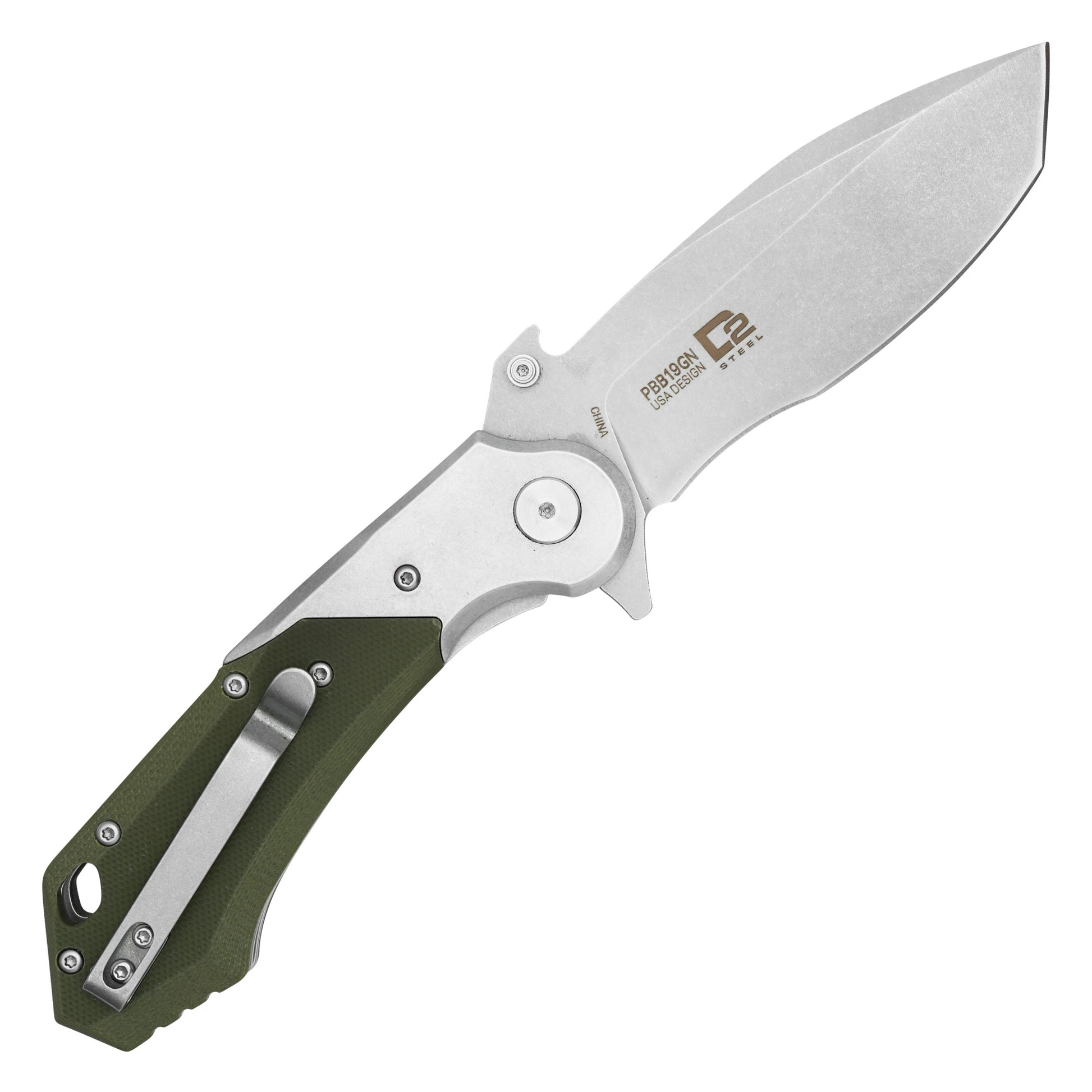 Clean, durable, and built for everyday reliability, this Buckshot Knives pocket knife features a 3.5" D2 steel drop point blade designed for excellent edge retention and long-term performance. The drop point blade profile provides balanced slicing capability with strong tip control for versatile cutting tasks. The 4.75" steel and green ABS handle offers lightweight durability with a comfortable, secure grip and a bold field-inspired finish. Equipped with a smooth ball bearing pivot system, belt clip, and carrying pouch, this knife is ready for dependable daily carry straight out of the box.