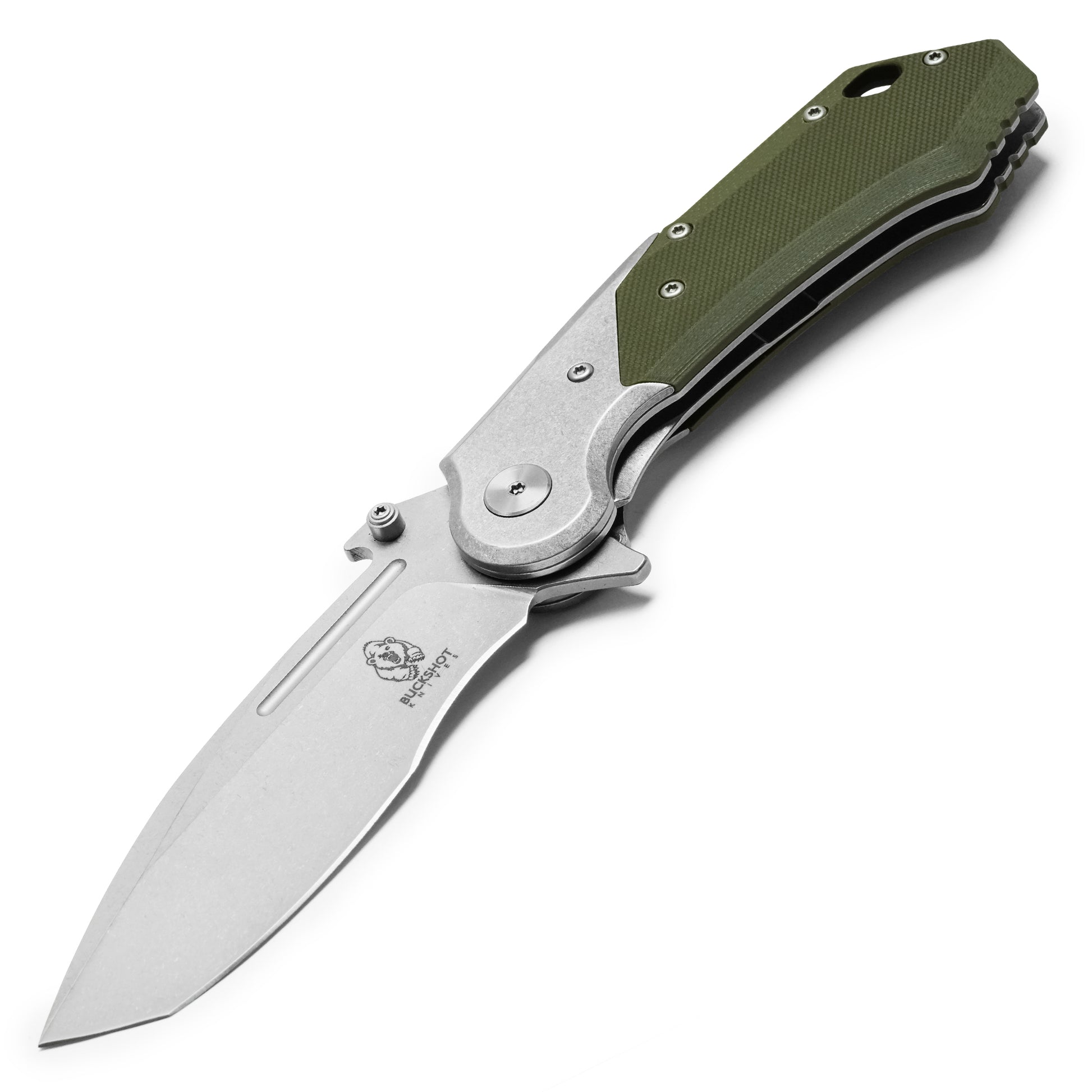 Buckshot Knives - 8.25" Green D2 Drop Point | Ball Bearing Pocket Knife