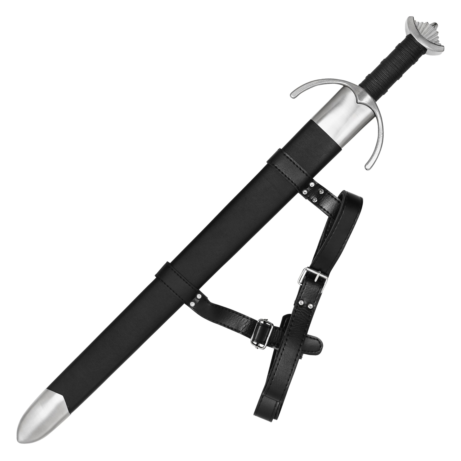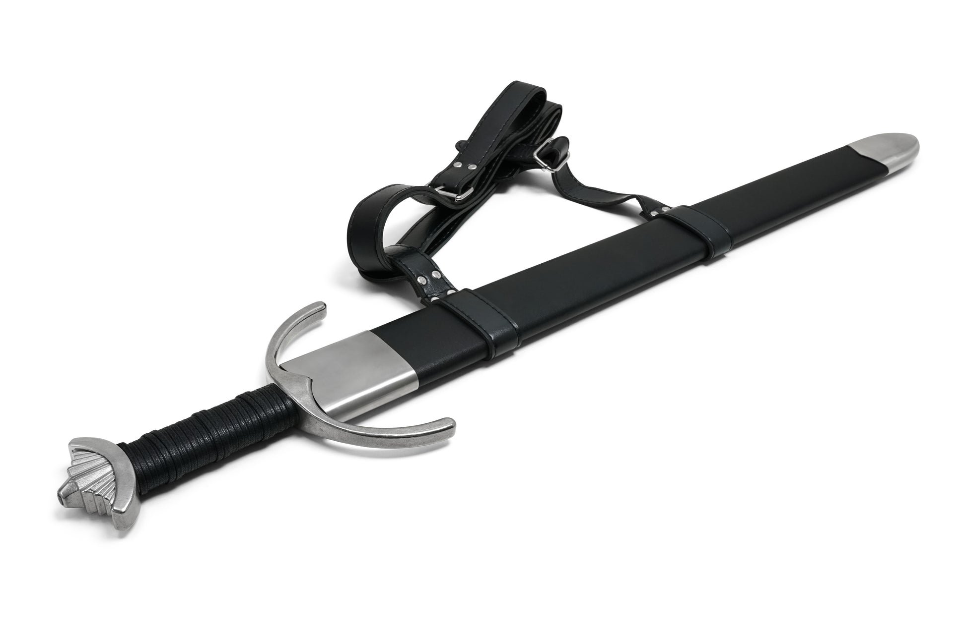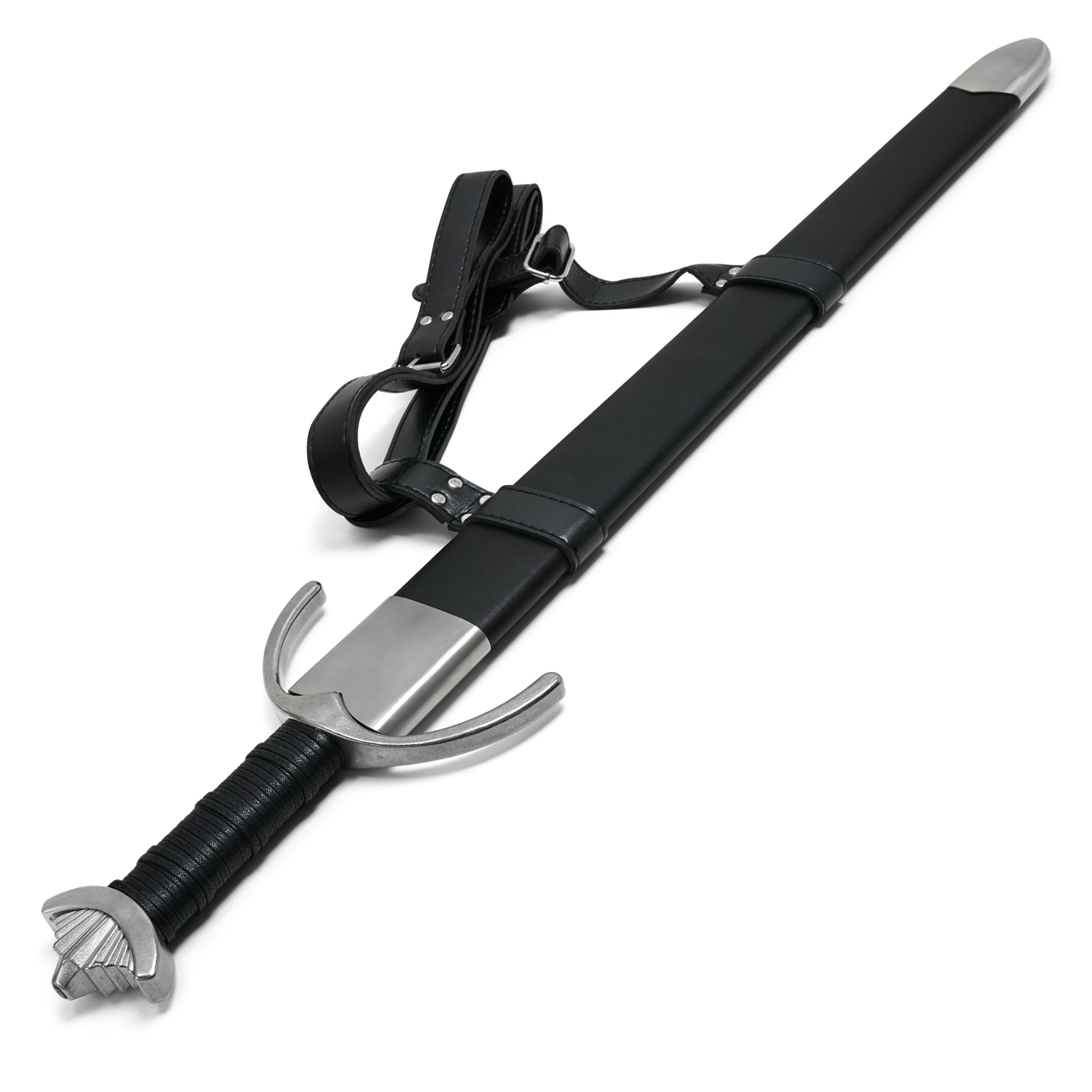 Channel the spirit of Norse warriors with this commanding Viking Sword Replica, a weapon that reflects the brutal elegance of ancient Scandinavian combat. Forged with a 27" battle ready manganese steel blade, this piece captures the rugged power and utilitarian style of true Viking craftsmanship. The 6" black wrapped handle features a steel guard that enhances its authenticity and grip. Whether you're building a collection, preparing for cosplay, or showcasing a piece of living history, this sword delivers presence and precision. It comes complete with a black strapped leather scabbard, perfect for display or transport.