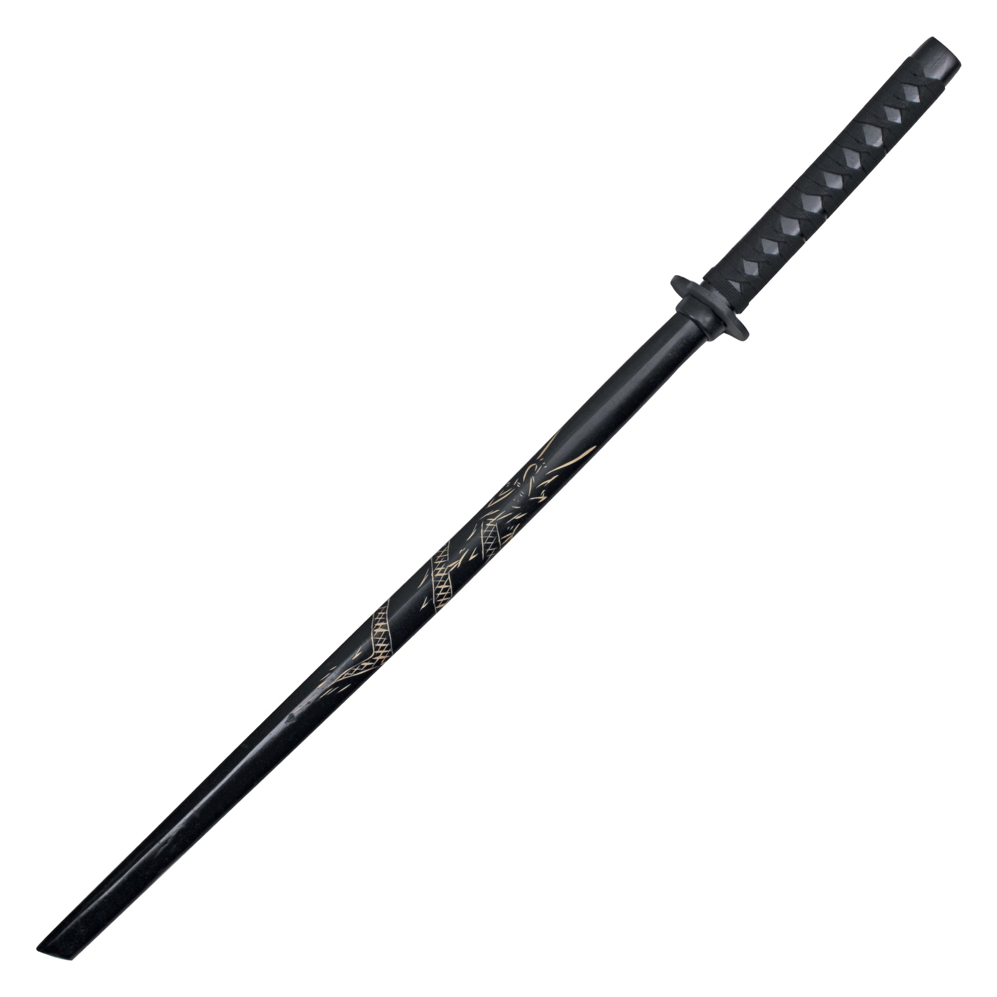 The 38" Black Wood Bokken Replica is a traditional-style wooden training sword, enhanced with a detailed dragon engraving along the blade. Designed for martial arts practice, cosplay, or decorative display, this bokken offers the shape and balance of a katana while ensuring safety in training. The black wood finish and engraved blade give it an elegant and fierce aesthetic, making it a standout piece for practitioners and collectors alike.