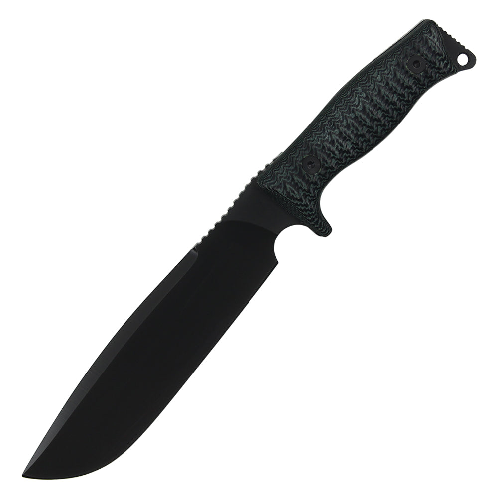 The Black Tactical Survival Hunting Knife is a rugged, full-tang fixed blade built for the outdoors. Featuring a 7.625" stainless steel blade with a stealth black finish, this knife ensures durability and precision for demanding field tasks. The 5" textured G10 handle provides a reliable, non-slip grip in any condition. Whether you're hiking, camping, or on survival missions, this knife balances strength, control, and practicality. Comes complete with a sharpening stone and a MOLLE-compatible sheath for on-the-go readiness.