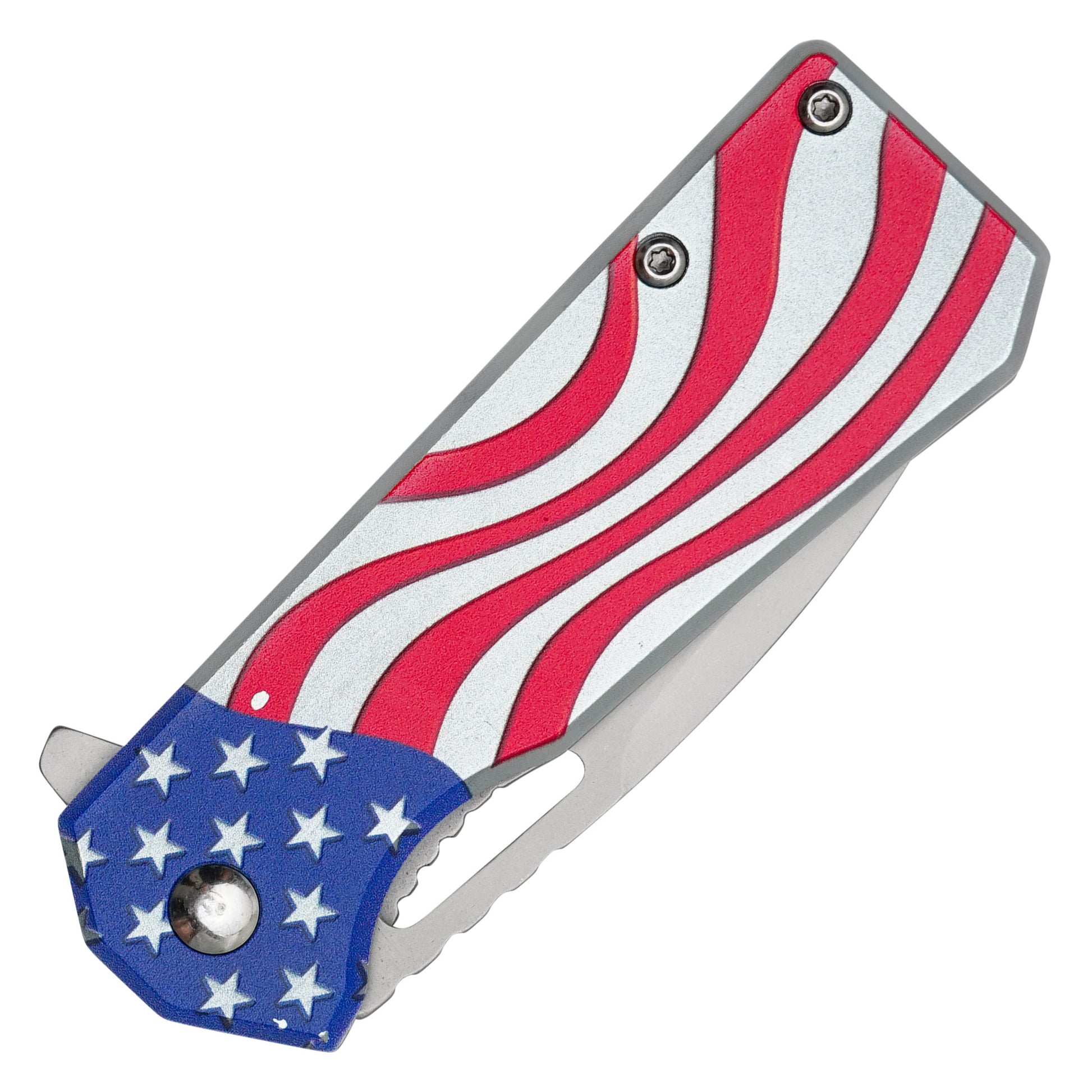 Wartech - 6.25” Silver USA Flag | Spring Assisted Pocket Knife